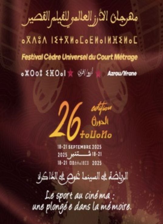 أكدت إدارة مهرجان الأرز العالمي للفيلم القصير في بلاغ لها، أن الدورة 26 لهذه السنة، والتي تنطلق خلال الفترة من 17 إلى 21 شتنبر الحالي، تحت شعار ” الرياضة في السينما ، غوص في الذاكرة “، ستحتفي بالرياضة الوطنية.