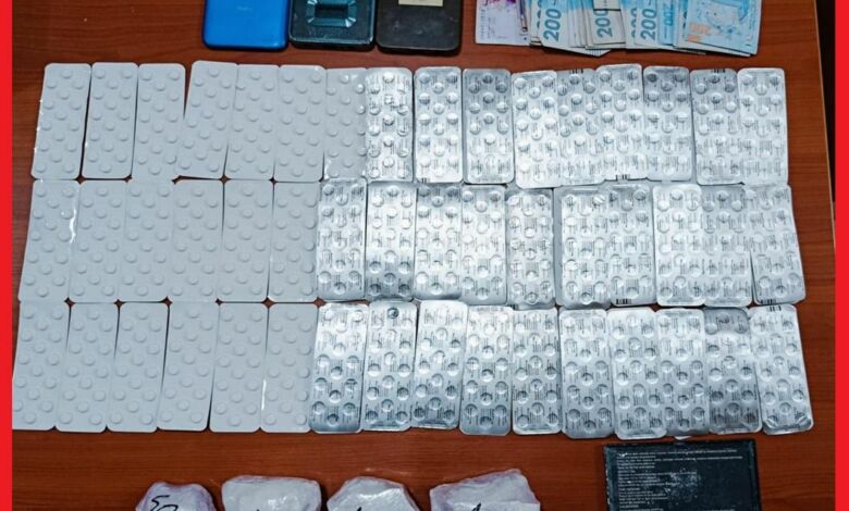 وقد جرى توقيف المشتبه فيهم بأحد أحياء مدينة مراكش، وهم في حالة تلبس بحيازة وترويج المخدرات، حيث أسفرت عملية الضبط والتفتيش عن العثور بحوزتهم على 1155 قرص مخدر من نوع ريفوتريل و350 غراما من مخدر الكوكايين، علاوة على ميزان إلكتروني ومبلغ مالي يشتبه في كونه من متحصلات هذا النشاط الإجرامي.