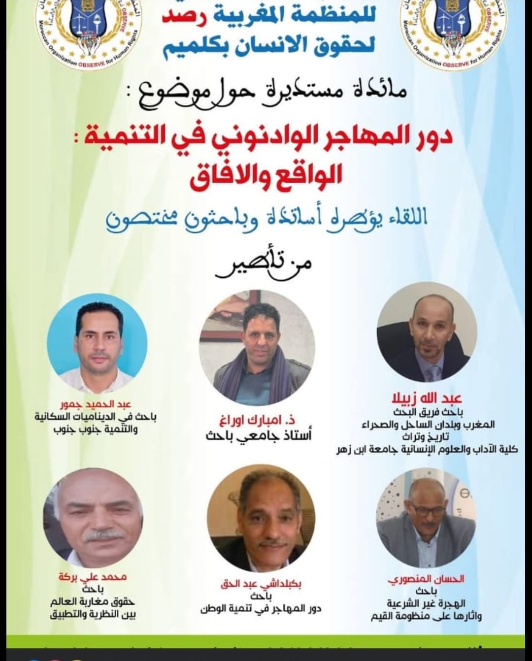يطيب لي، وأنا أتابع باهتمام أشغال مائدتكم المستديرة، أن أعبر لكم عن بالغ التقدير لهذه المبادرة الفكرية والحقوقية التي تفتح نقاشاً جاداً حول مكانة المهاجر الوادنوني ودوره في التنمية.