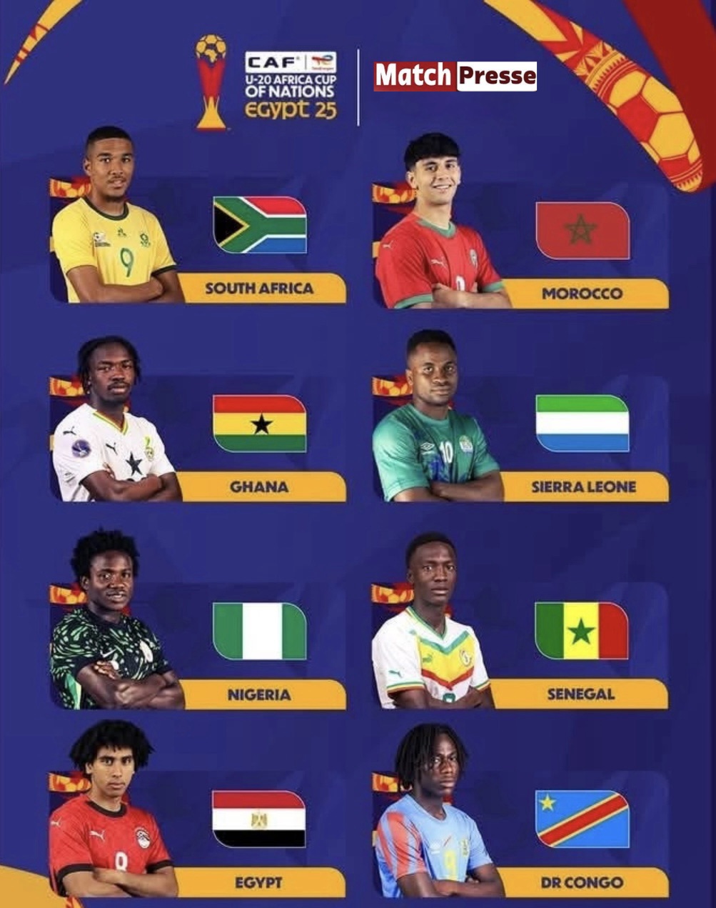 منتخب جنوب إفريقيا تصدر مجموعته عن جدارة، وتقدم فريقًا متوازنًا طموحًا، فيما منتخب الكونغو الديمقراطية تأهل كأفضل ثالث وقدم مستويات قوية تجعلها خصمًا لا يُستهان به.