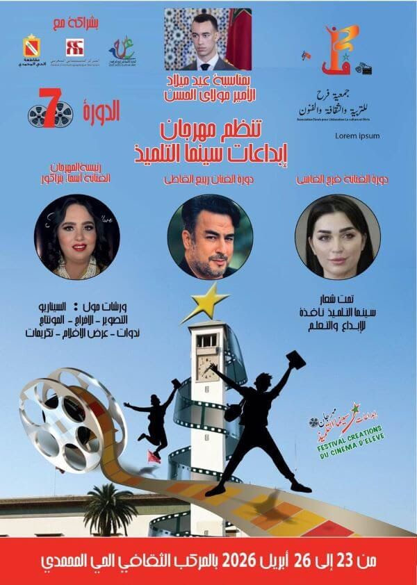 تحتضن مدينة الدار البيضاء مهرجان “إبداعات سينما التلميذ” تحت شعار ،’ سينما التلميذ نافدة للإبداع والتعلم’، الذي تنظمه جمعية فرح للتربية والثقافة والفنون، بمناسبة عيد ميلاد صاحب السمو الملكي ولي العهد الأمير مولاي الحسن، بدعم من المركز السينمائي المغربي، وبتعاون مع المديرية الإقليمية لوزارة التربية الوطنية (عين السبع الحي المحمدي). ومقاطعة الحي المحمدي، وذلك في الفترة ما بين 23 و 26 أبريل الجاري.